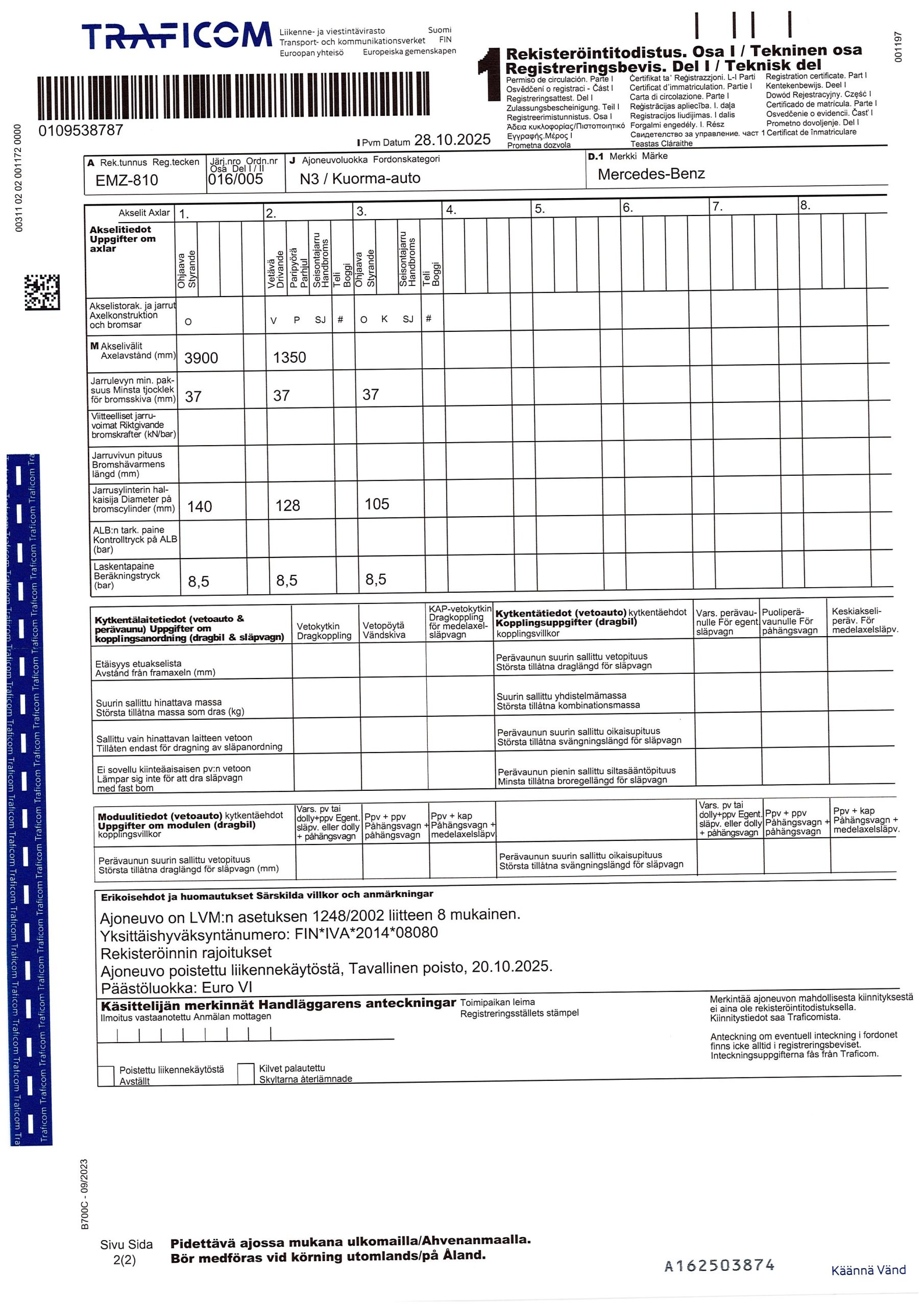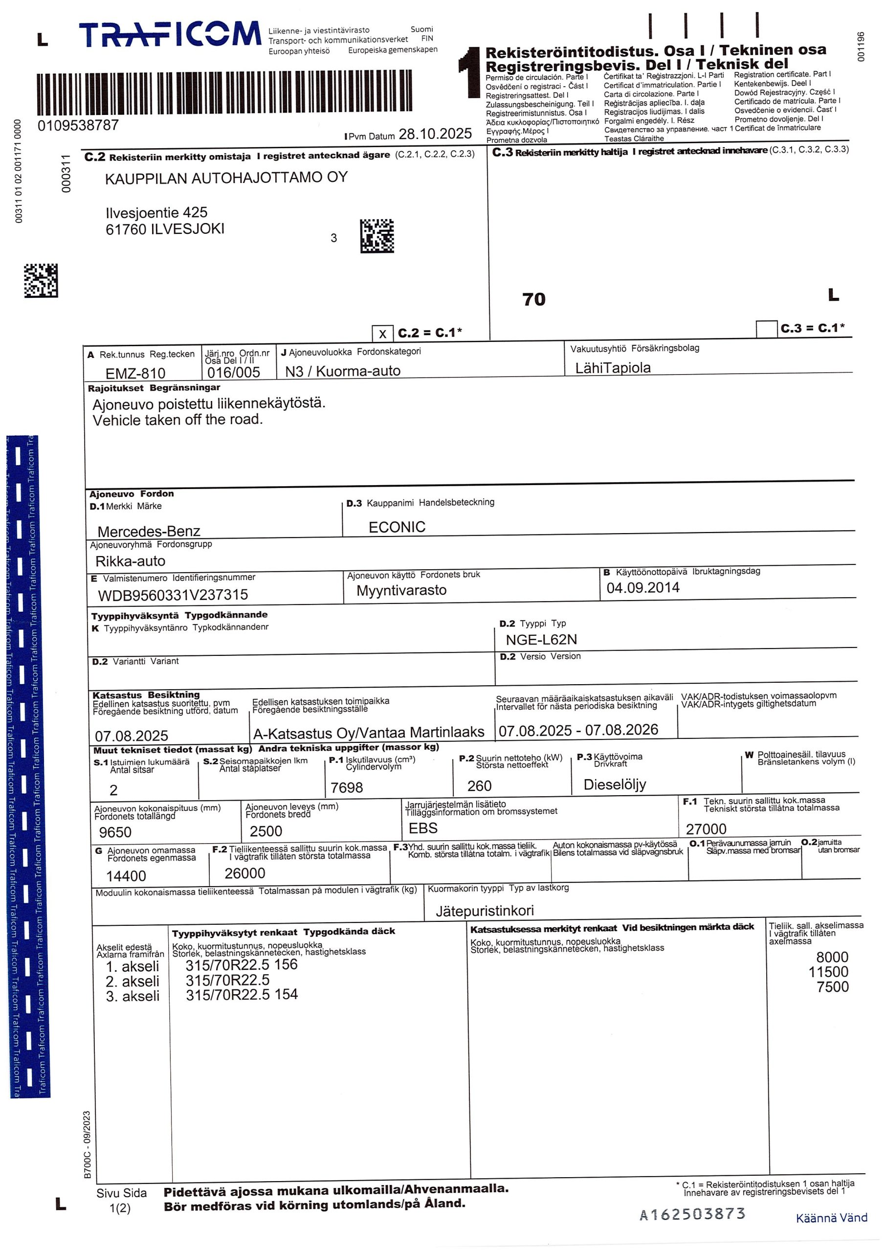 Jätepakkaaja Norba RL-300 + L200, katsastus voimassa 7.8.2026 saakka.