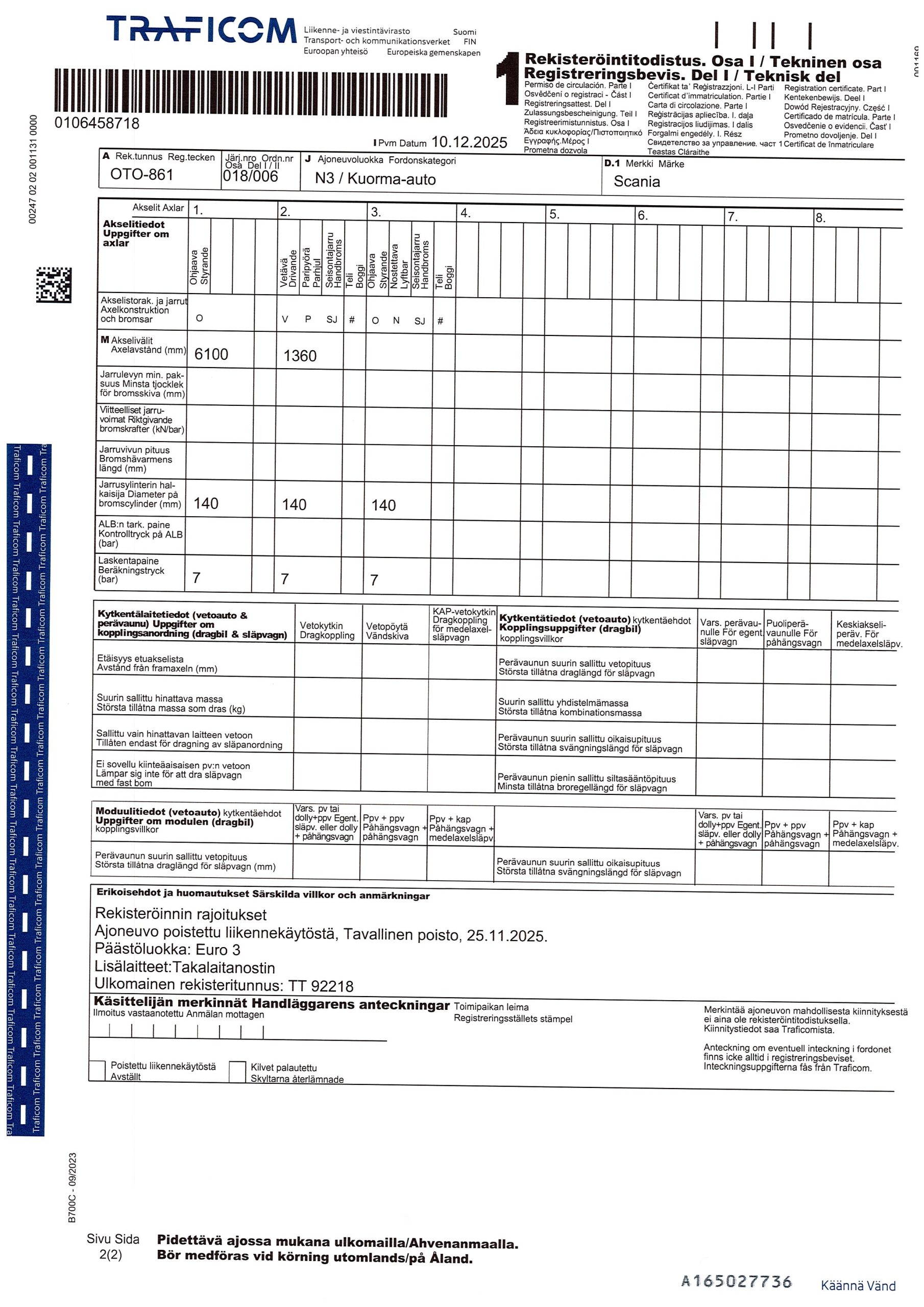 Umpikori, sisämitat: pituus 9,70m, leveys 2,52m, korkeus 2,13m, PL-nostin, Opticruise-vaihteisto, katsastus voimassa 7.9.2026 saakka.