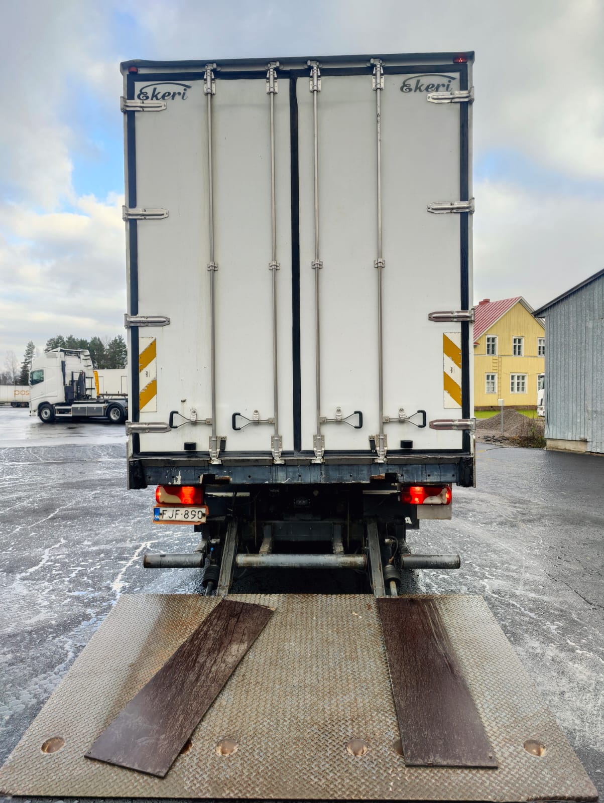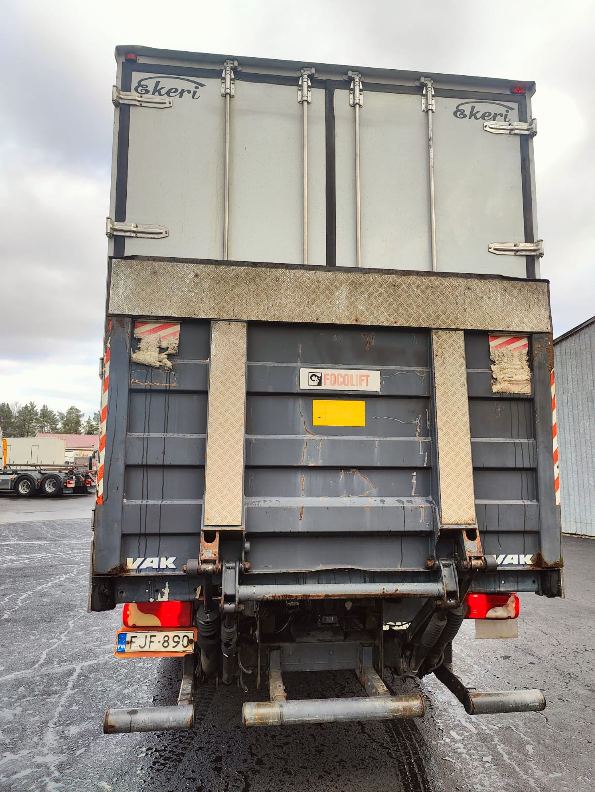 Ekeri kokokylkiaukeava umpikori, sisämitat: pit. 7,65 m/ lev. 2,5 m/ kork. 2,82 m, Focolift pl-nostin 1500 kg, vesiwebasto, Opticruise -vaihteisto