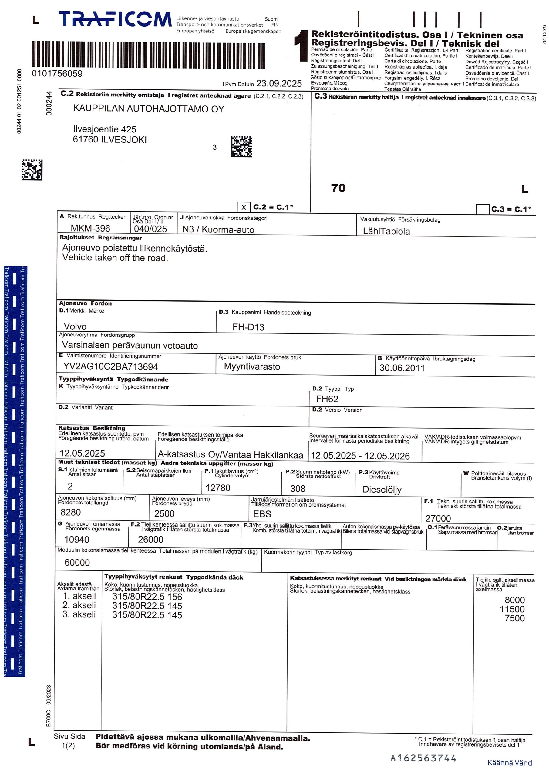 Multilift vaijerilaite 20 ton. pituus n. 6,10 m, leveysvalot, VBG-vetovarustus, manuaalivaihteisto, jääkaappi, vesiwebasto, katsastus voimassa 12.5.2026 saakka.