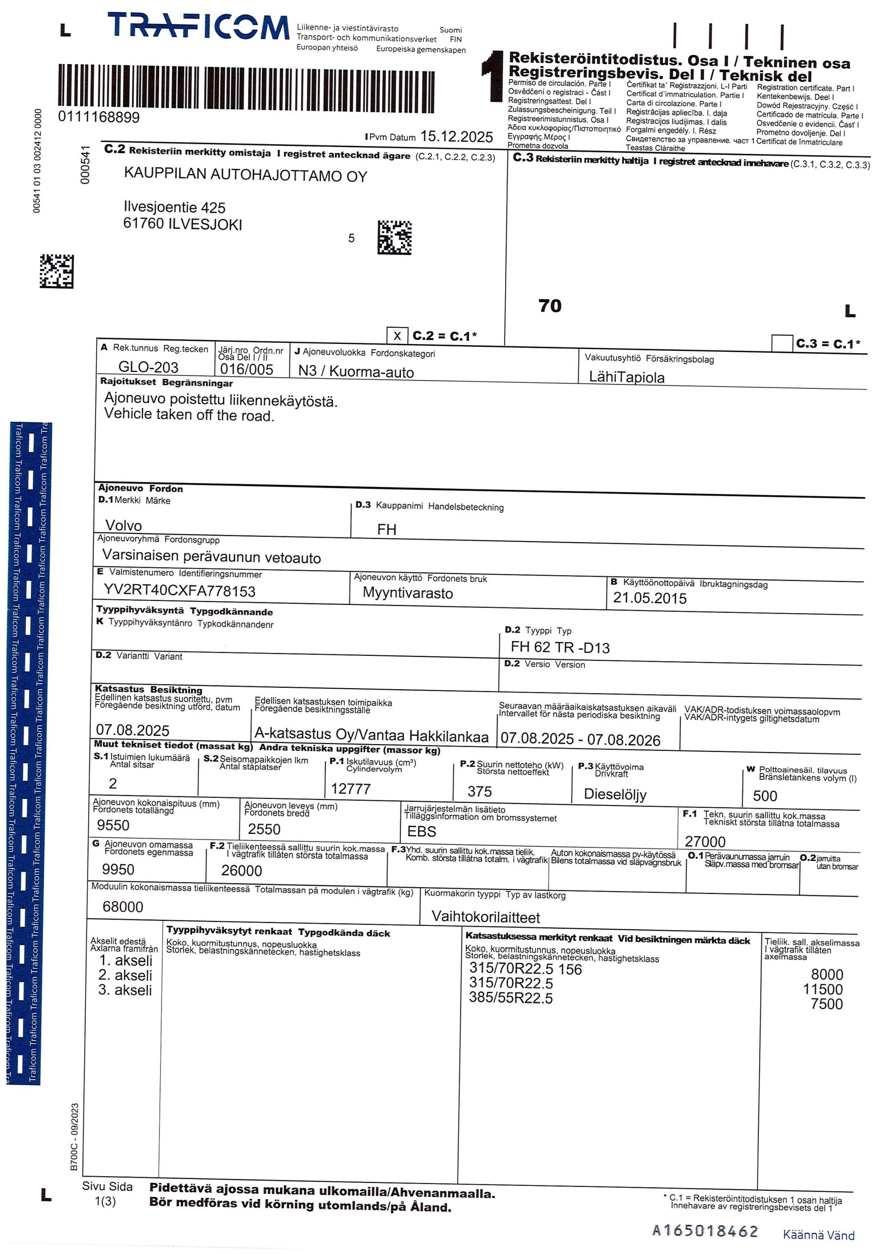VAK-tasonostolaite, pituus 7,20m, I-Shift, vesiwebasto, katsastus voimassa 7.8.2026 saakka.