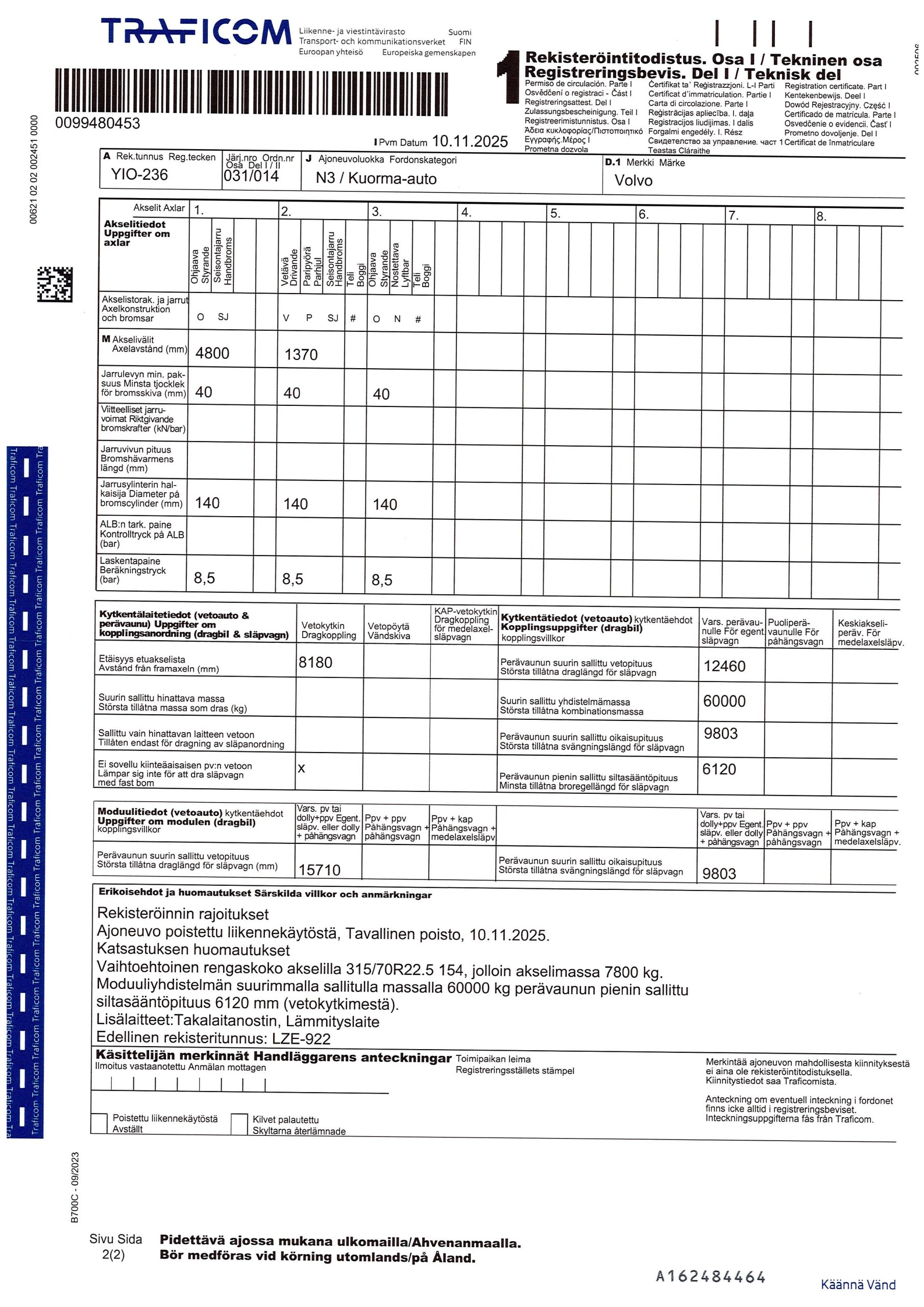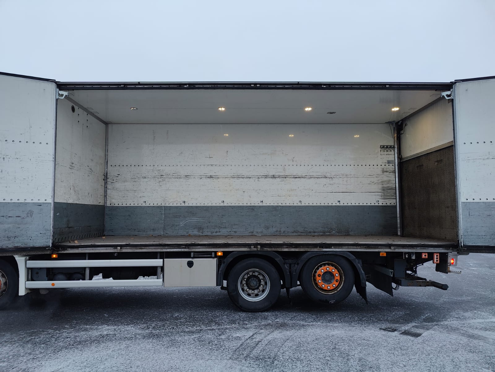 VAK kokokylkiaukeava umpikori, sisämitat: pituus 7,69m, leveys 2,51m, korkeus 2,50m, Zepro pl-nostin 2000kg, kuormatilan lämmitin, tuulenohjain, I-Shift-vaihteisto, vesiwebasto, katsastus voimassa 15.10.2026 saakka.