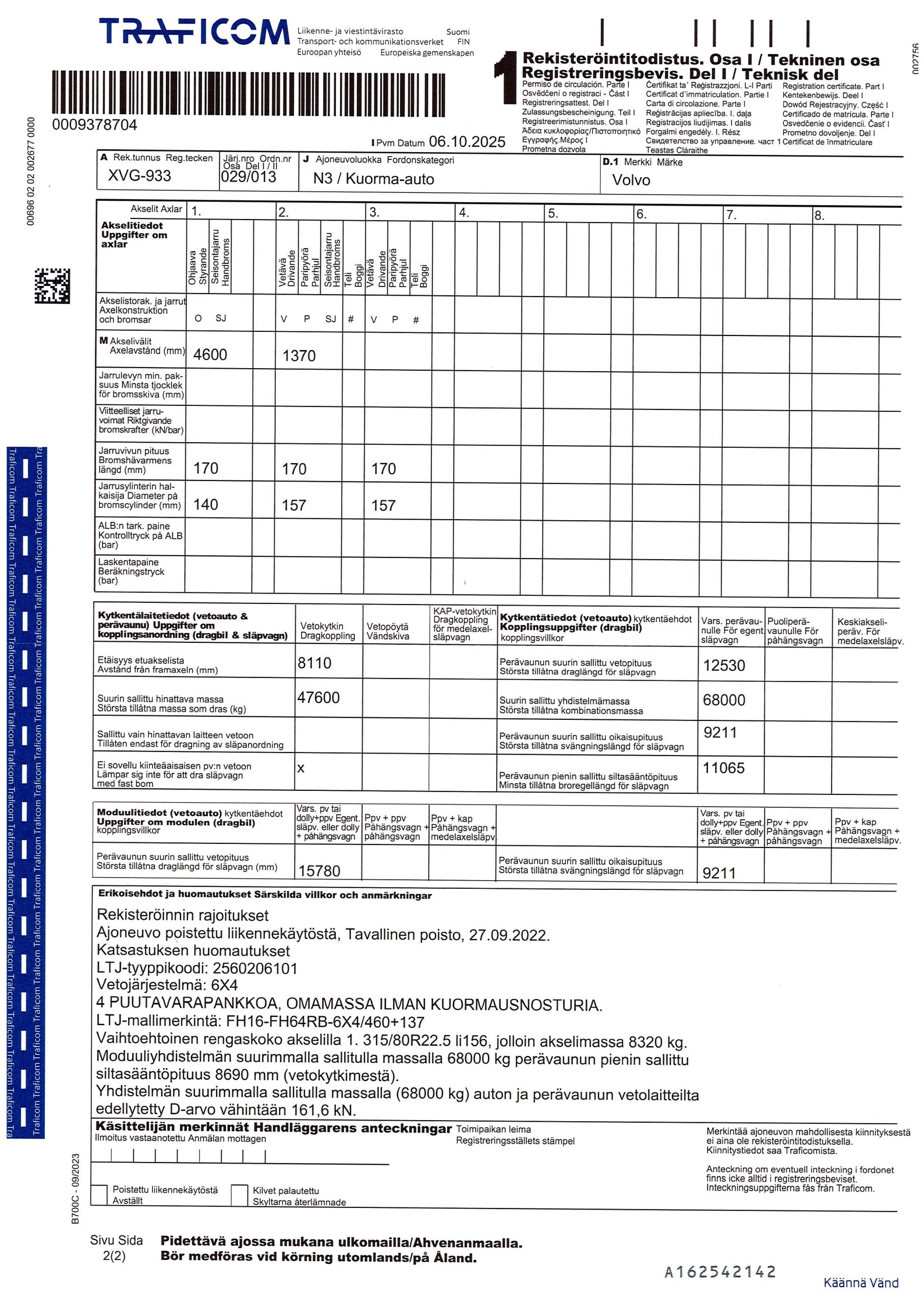 Puutavaravarustus, Loglift 96 S puutavaranostin, VBG- vetovarustus, manuaalivaihteisto, paperipiirturi, vesiwebasto.