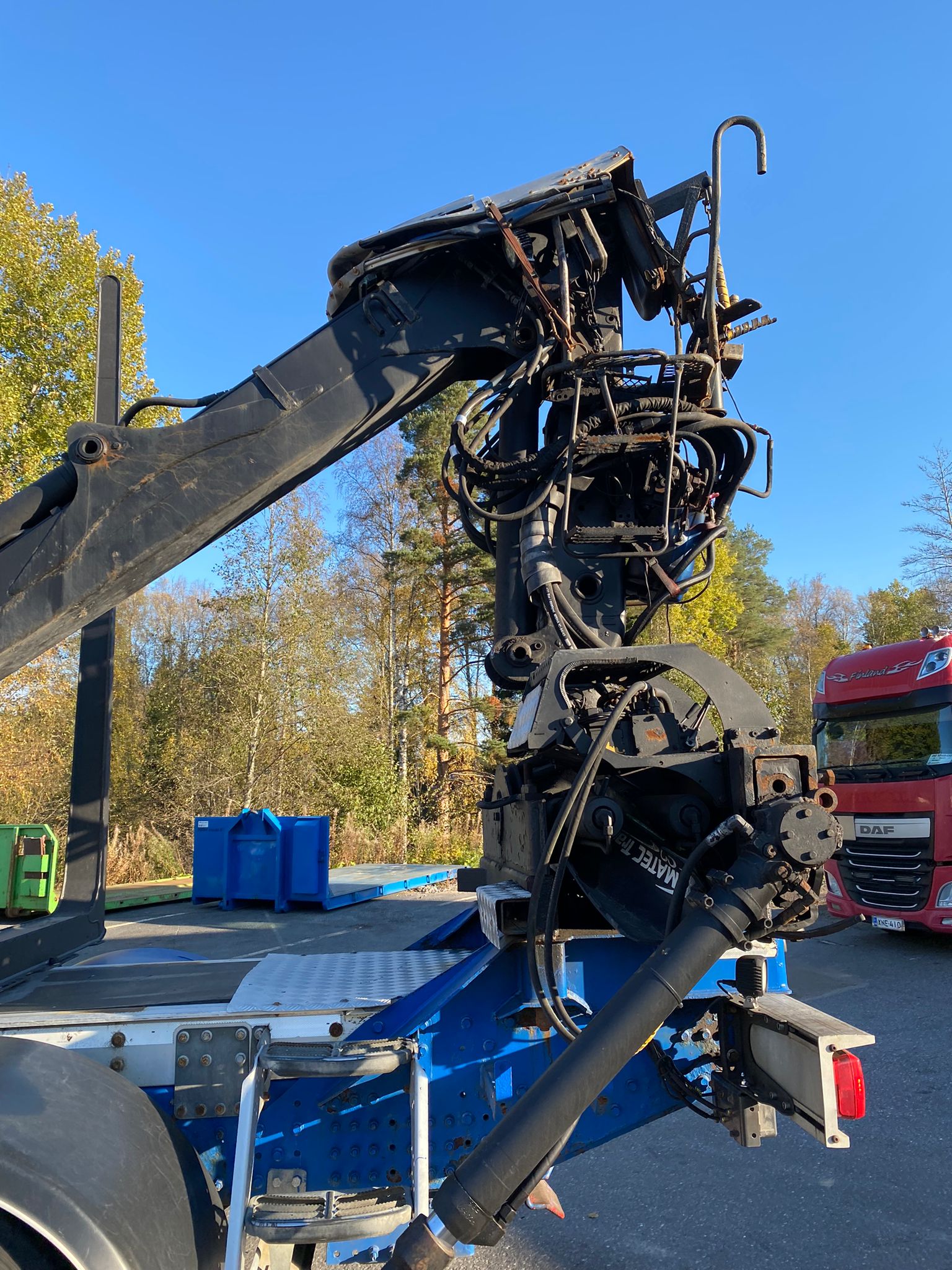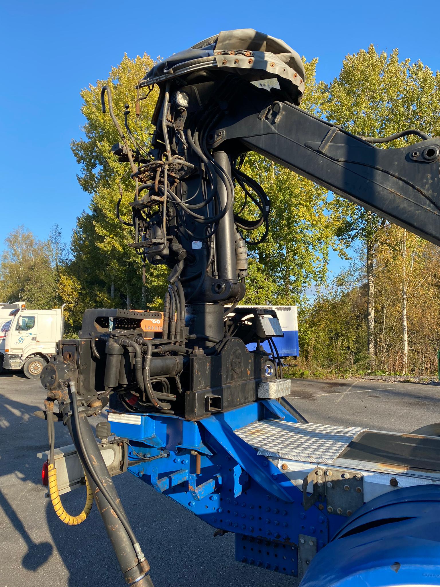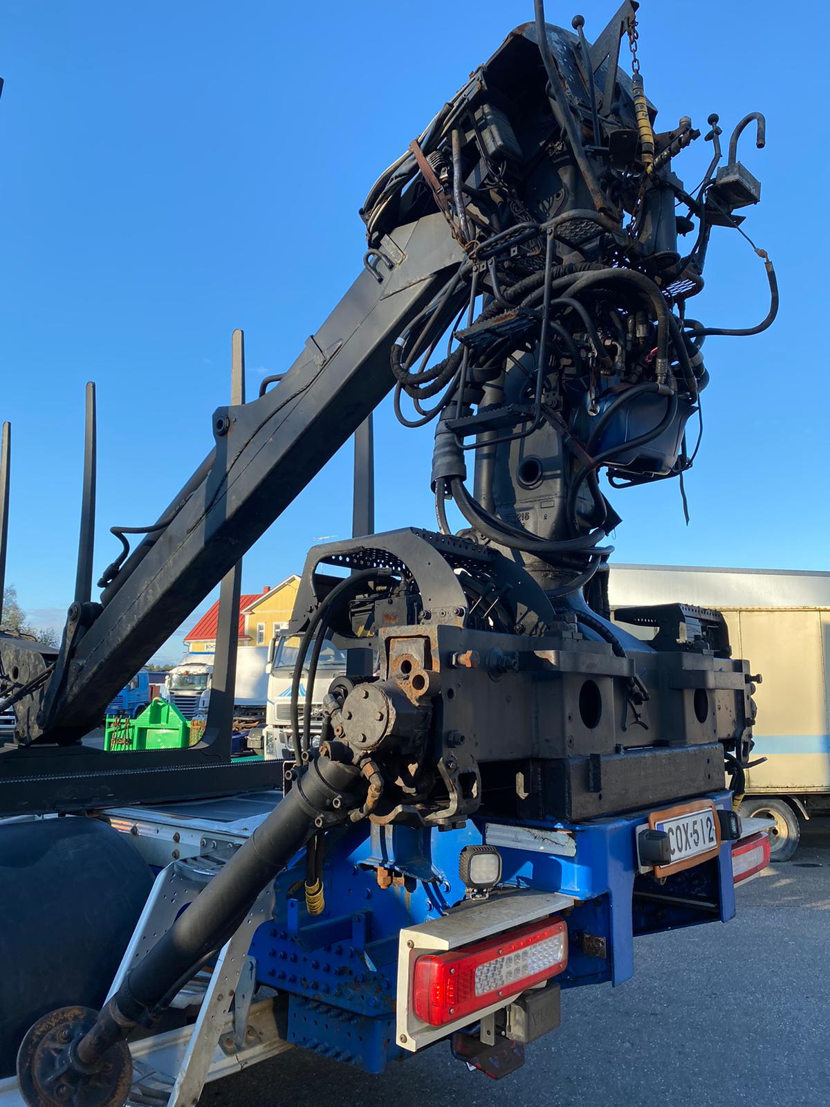 Puutavaravarustus, vetovarustus, jääkaappi, nosturi Loglift F 118 S T 96, vm. 2016, koura ja pyöritin, katsastus voimassa 26.10.2026 saakka.