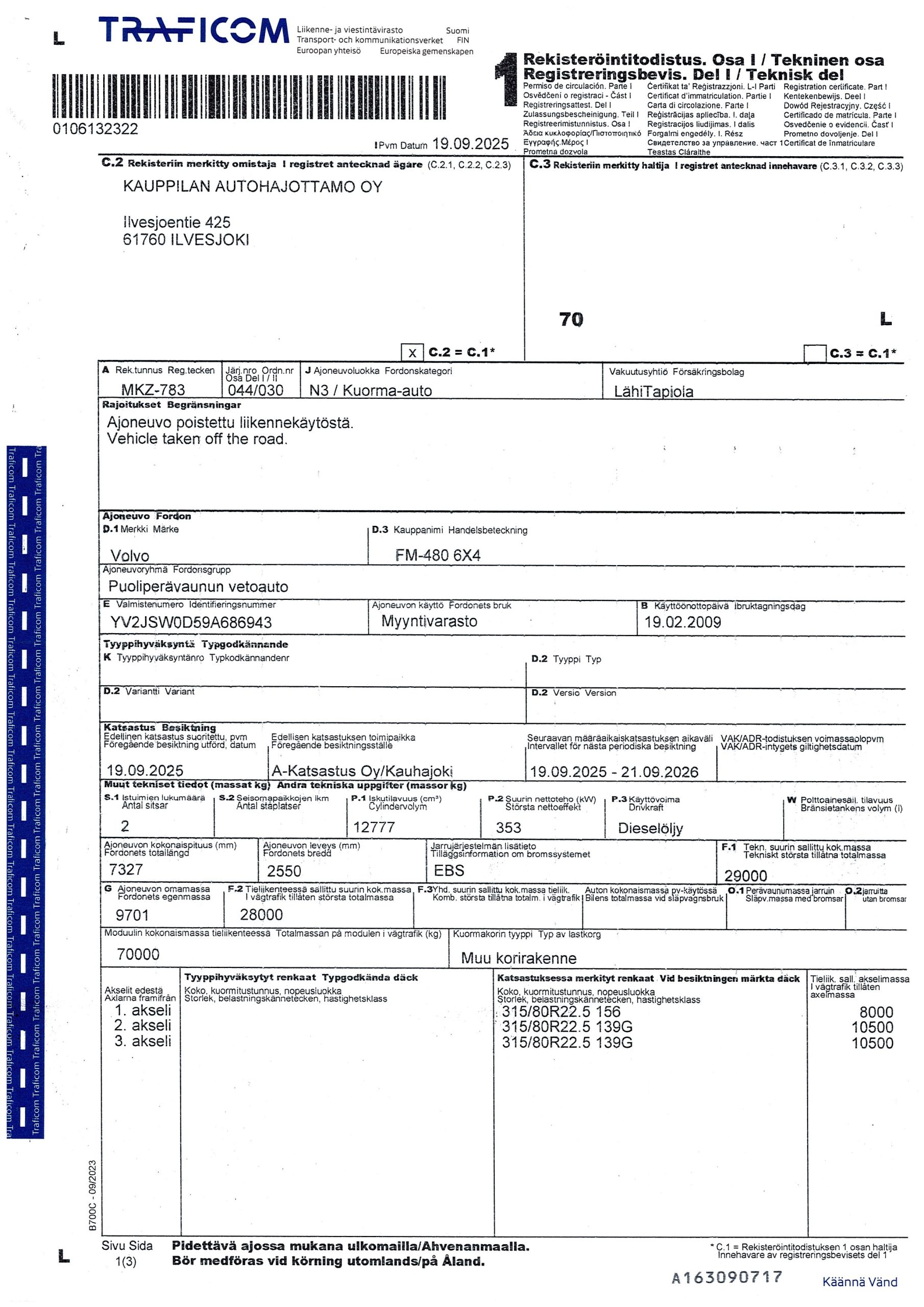 Siirtopöytä, kippi/ kävelevä lattia -hydrauliikka, manuaalivaihteisto, katsastus voimassa 21.09.2026 saakka.