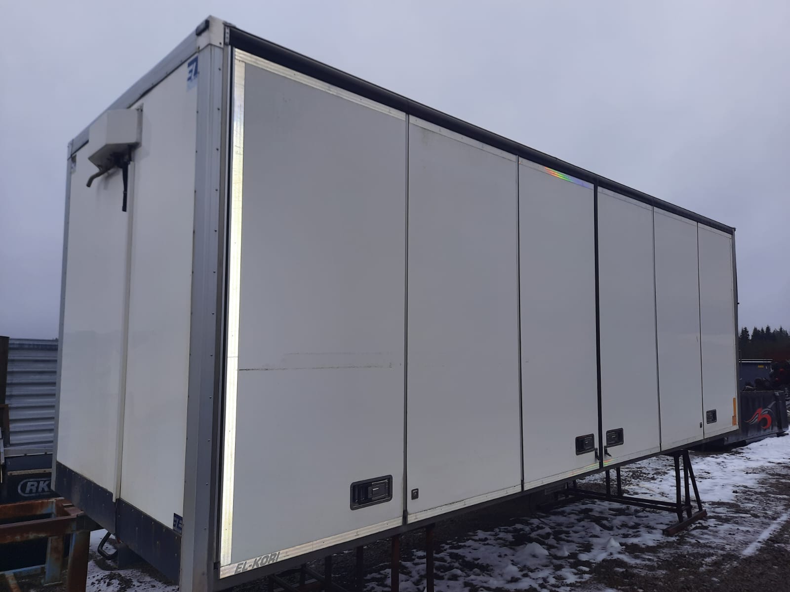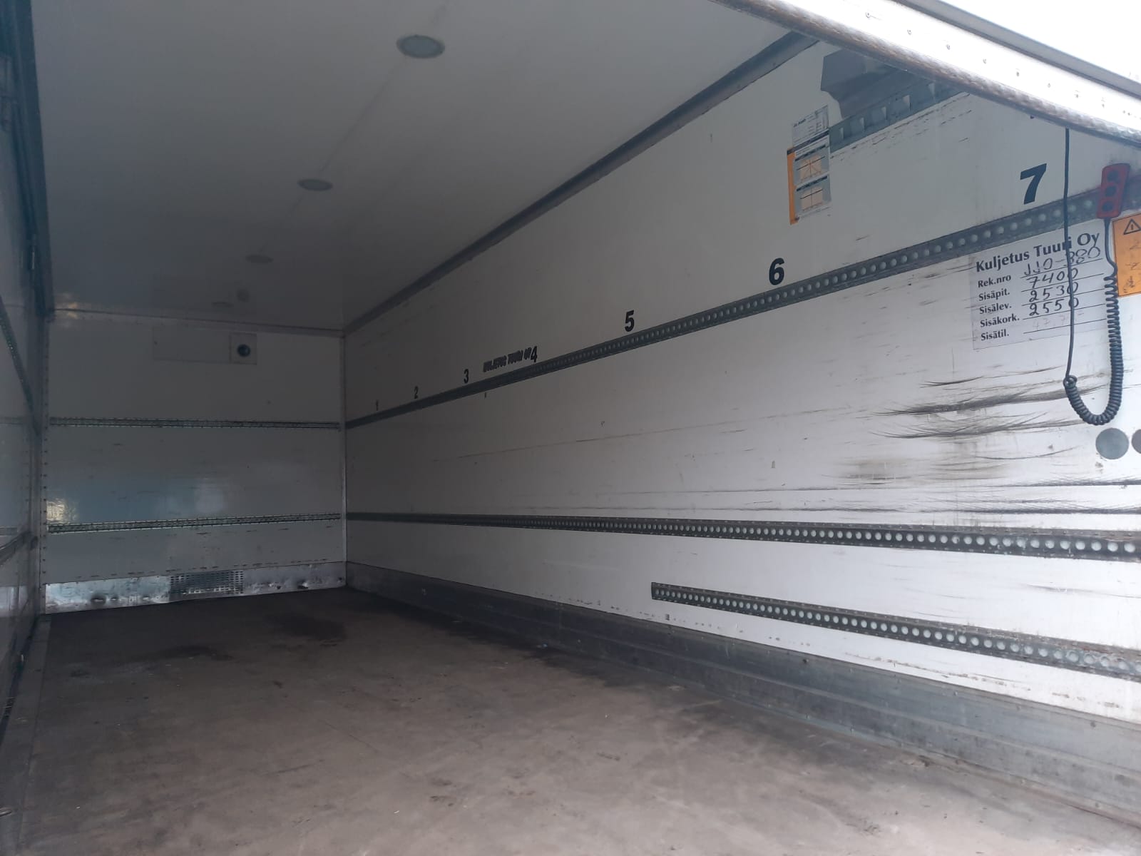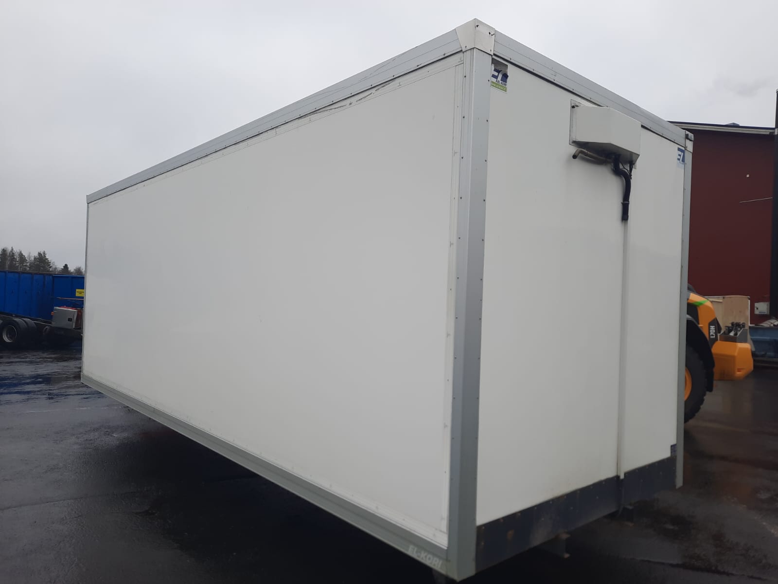Kokokylkiaukeava kuljetuskori, sisämitat: pit. 7,4m, lev. 2,53m, kork. 2,5m.