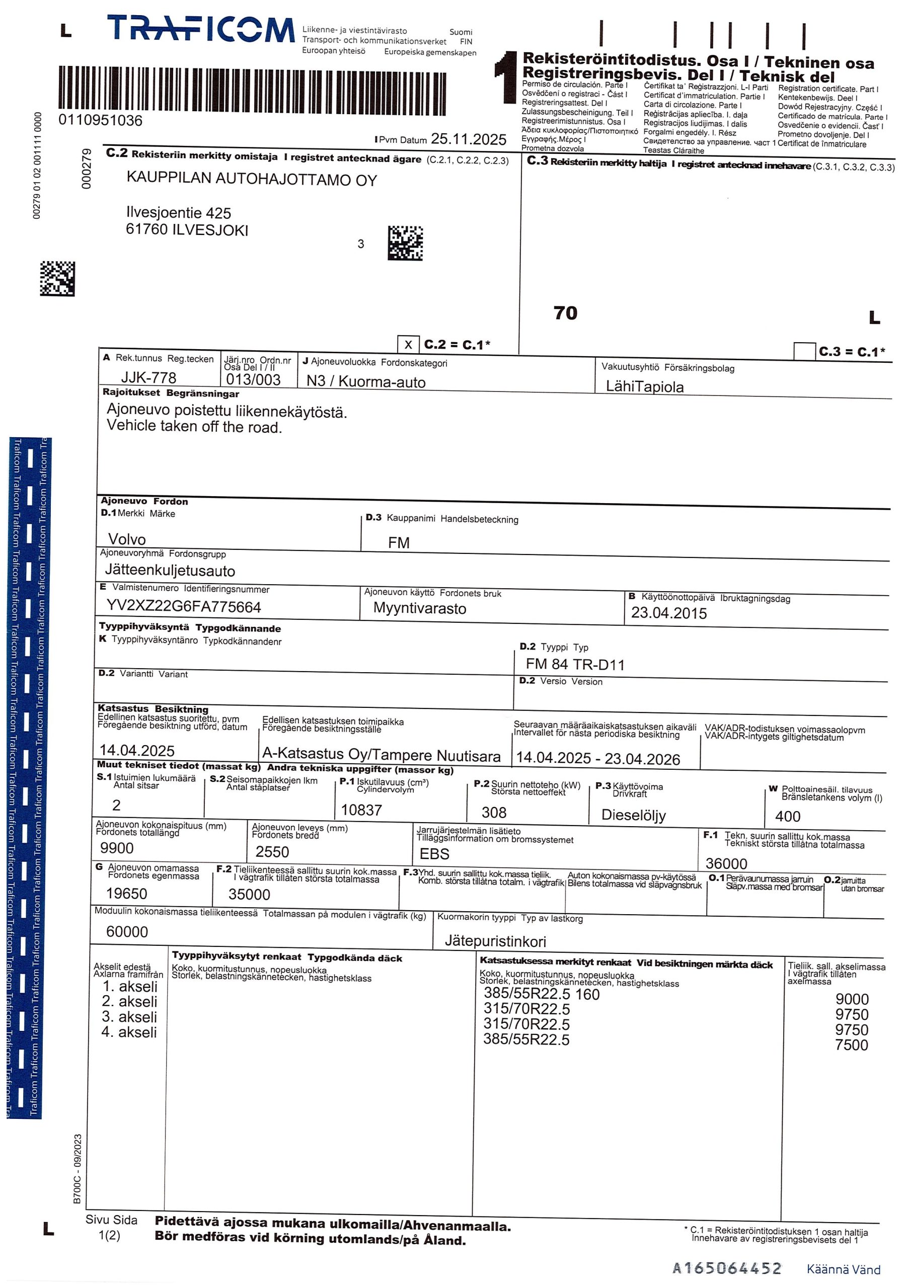 Runkonumero/VIN